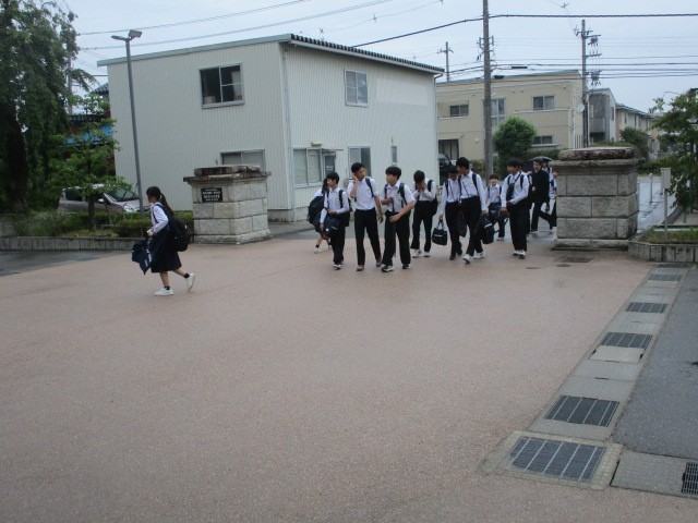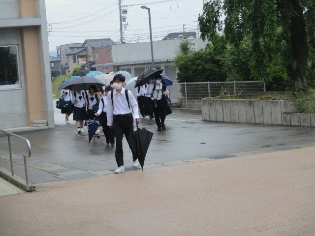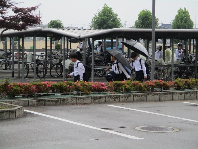 今朝の登校時は曇りになりました。本日の下校完了時間は16:55です。