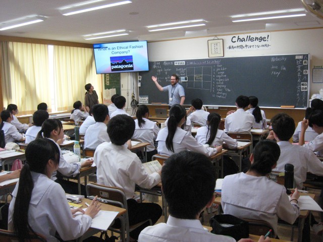 3枚目:6組英語では、ALTの先生から、エシカルファッションについて説明を受けています。