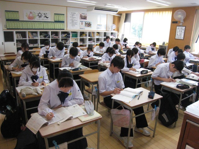 今日は、富山市中学校総合選手権大会のため、大会に行かない生徒達は、各教室で自主学習を進めています。