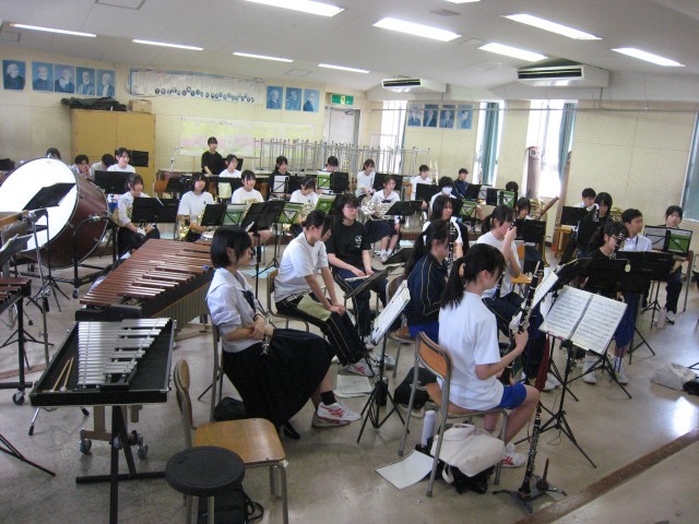 1枚目:吹奏楽部は、吹奏楽祭に向けて全体合奏をしています。