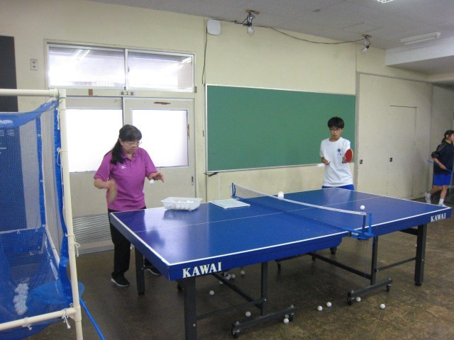3枚目:卓球部は、卓球台をフルに活用して、試合形式の練習や球出しをしてもらって打ち込み練習をしています。