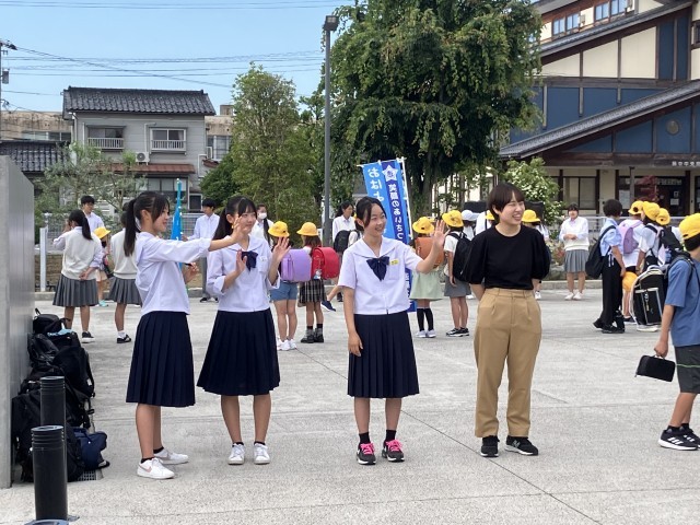 さわやか運動2日目です。今日も小学校、富山西高校と合同で活動しています。