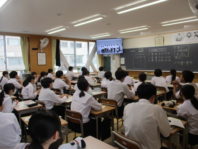 4限に受賞報告会を各教室への配信の形で行いました。富山市中学校総合選手権大会を中心に多くの受賞が報告されました。写真はサッカー部、バスケットボール部、卓球部です。