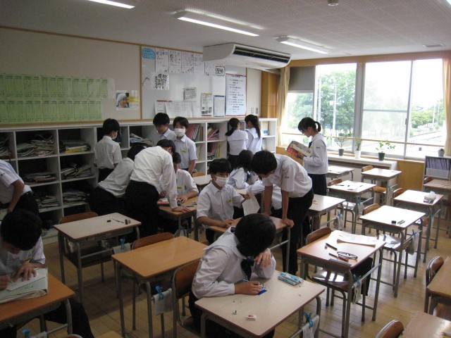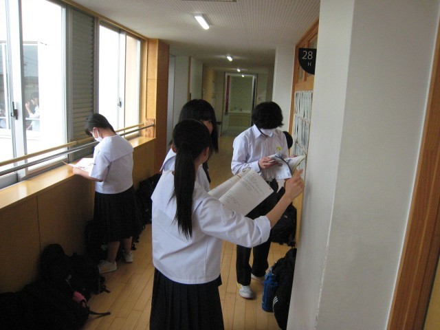 期末考査2日目です。休み時間のわずかな間を利用して、勉強に励む生徒もあちこちで見られます。