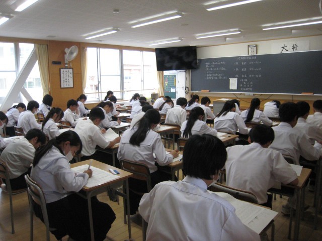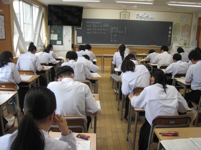 本日2限目、国語のテストを受けています。聞き取りテストもあり、みんな集中して取り組んでいました。
