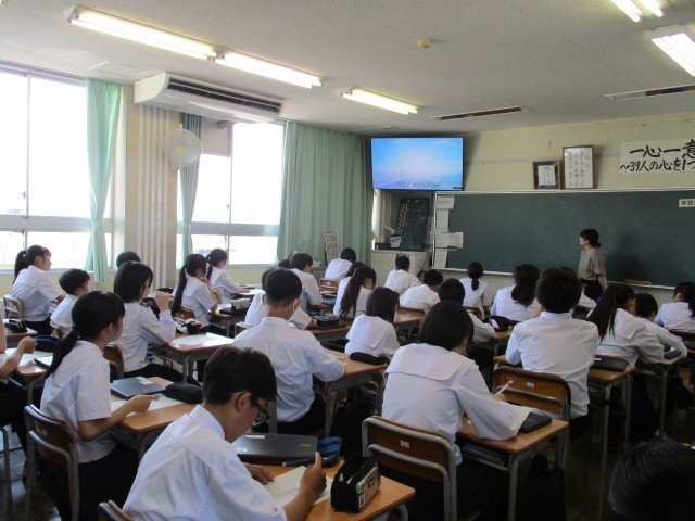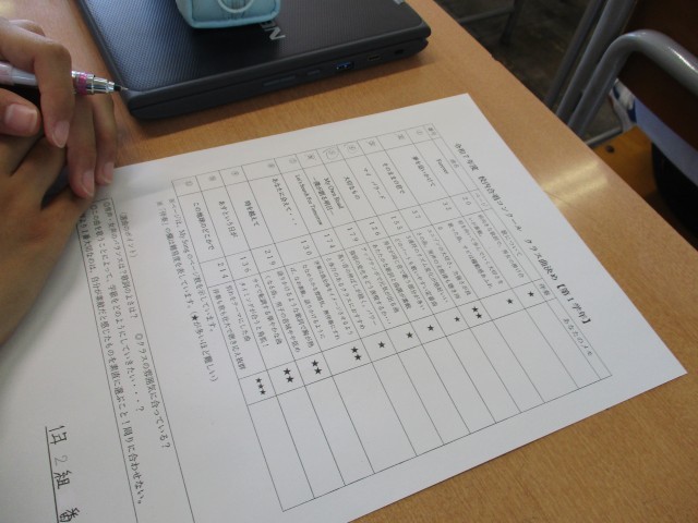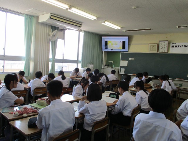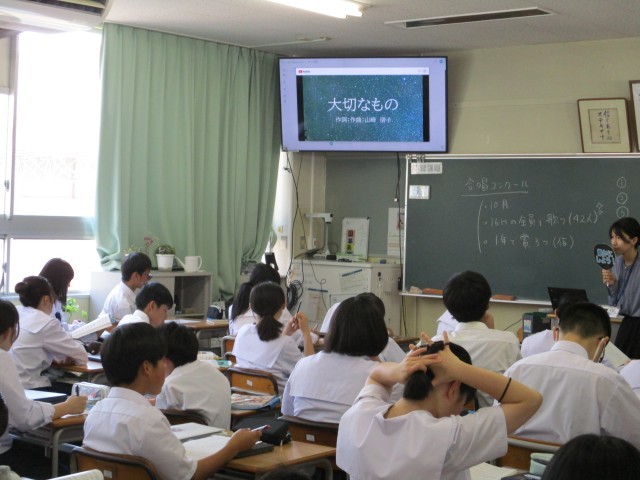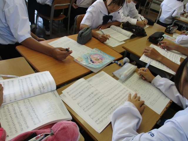 6限目に、合唱コンクールの曲決めを行いました。メモを取りながら11曲を聴いて、自分の歌いたい曲を選びました。