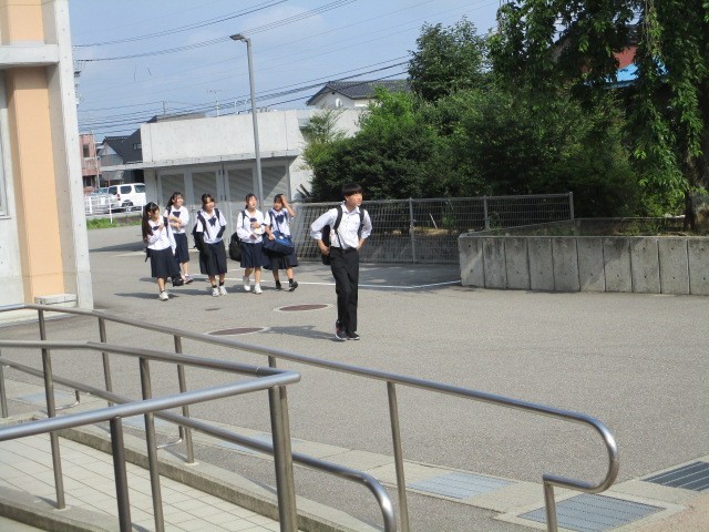 今朝の登校時は晴れになりました。今日から2年生は「社会に学ぶ『14歳の挑戦』」が始まります。本日の下校完了時間は16:55です。