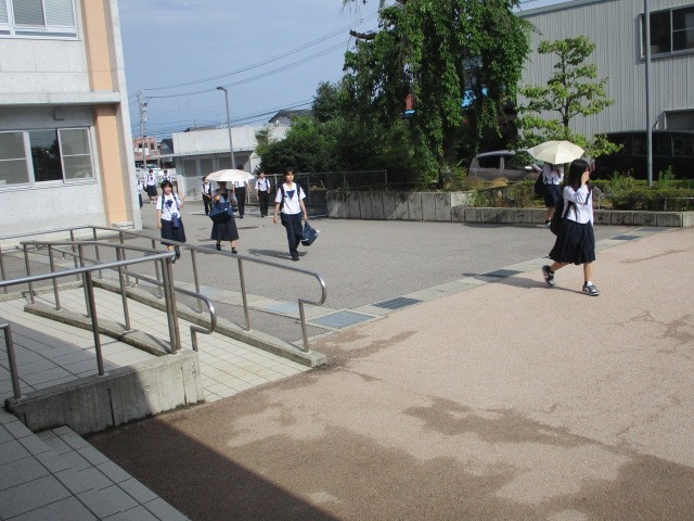 今朝の登校時は晴れになりました。本日の下校完了時間は15:55です。