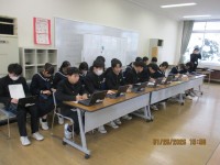 3限に、全校でスマートフォンの持ち込みに関する学級討議を行いました。生徒会長から...
