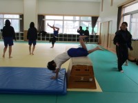 体育では、マットの授業を行っています。グループに分かれて、自分の目標の技を練習しています。先生方に補助をしてもらって、バク転の練習をしているグループもあります。補助付きで練習して感覚を身につけた後で、...