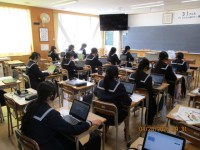 1年生の4限の様子です。理科では、理科室で顕微鏡をのぞいていました。写真は上から11H理科、12H社会、13H技術、14H数学、15H体育、16H国語、17H美術、18H音楽、19H理科の様子です。