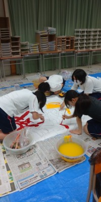 2組、3組は書初の練習を行いました。丁寧に書いています。 1組は理科の授業です。分からないところを教え合う様子が見られました。
