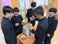今日の給食に、ソフト麺が出されました。 3年生にとっては中学校生活、もしかするとこの先の長い人生においても、最後のソフト麺になるかもしれません。 味わいながら、おいしそうに食べていました。