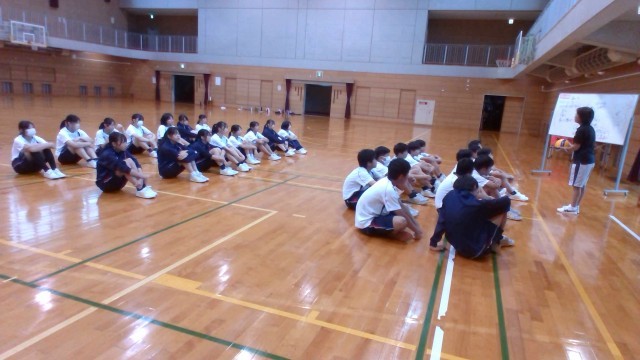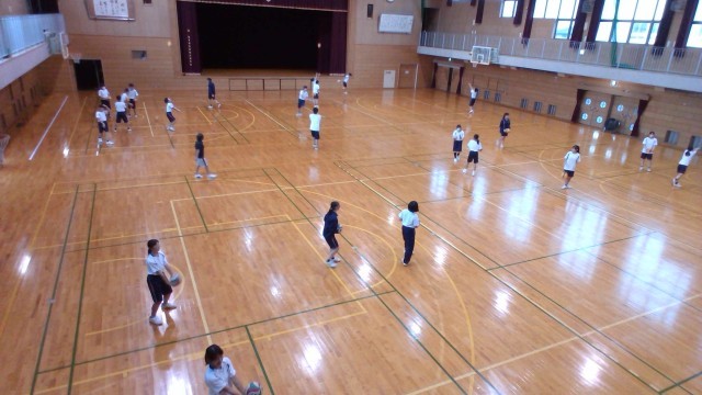 「手首を反らして腕を伸ばす」「ボールを迎えに行かないで待つ」などレシーブの基本を頭に入れ、いよいよ練習開始。アンダーハンドによるバウンドパスをしています。さて、一体何回続けることができるか。目指せ、未来のカーチ・キライ!(またもや古くてすみません。でも、サーブレシーブの完璧さは今でも忘れらないですね)