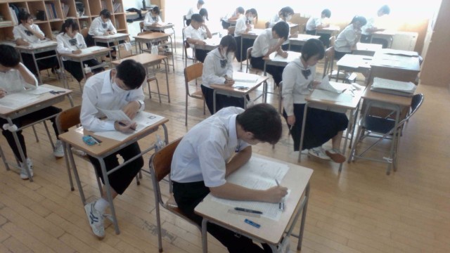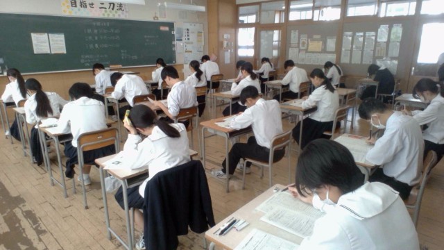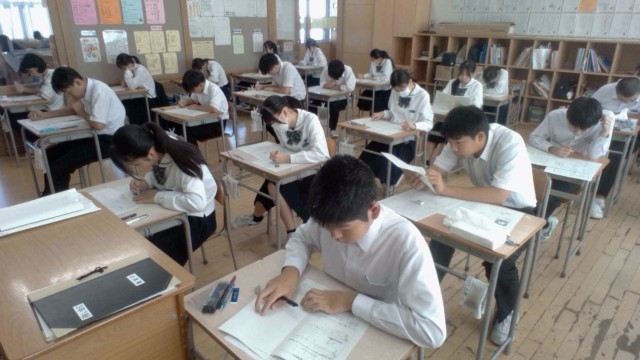 本日より2日間の日程で2学期中間考査を行います。写真は3年生のテストの様子です。