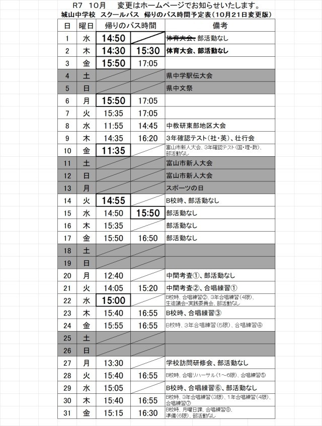 10月22日(水)第1便 14:50 → 15:00  第2便 なし(変更ありません。)