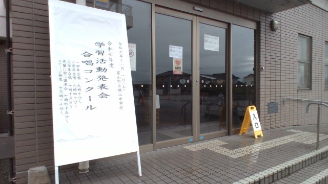 本日は、学習活動発表会。日頃の文化・芸術的活動等の成果、練習を重ねてきた合唱を披露いたします。ご来場の際は、交通安全、獣害防止にご配慮の上、お越しください。