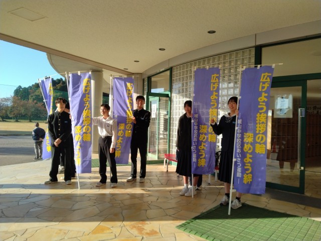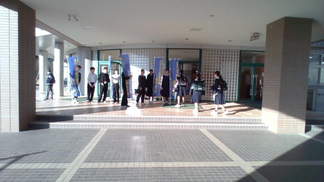 さわやかな秋晴れの朝になりました。久しぶりの紺碧の空です。のぼりを掲げてあいさつ運動をしてくれた皆さん(3-3)ありがとうございました。