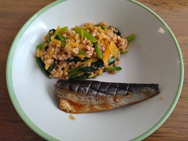 【昨日の献立】 いわしの土佐煮 納豆和え 卵とじ RICE MILK 師走4日(木)の給食献立になります。