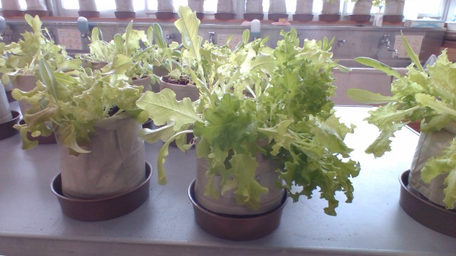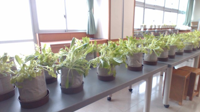 3年生技術・家庭科(技術分野)で栽培したレタスが収穫の時期を迎えました。