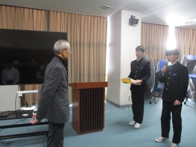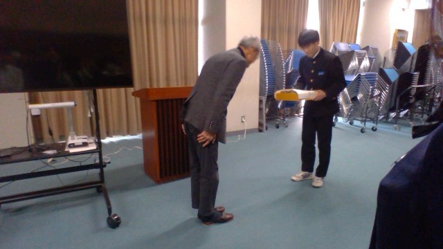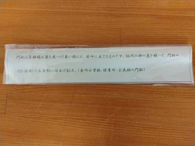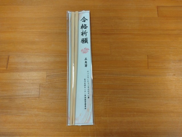 音川交流センター事業運営委員会の皆さまから、「五角箸」を3年生全員分いただきました。「五角」を「合格」に見立てています。毎年、ありがとうございます。音川小学校等で飾られた門松の竹を使って作られました。