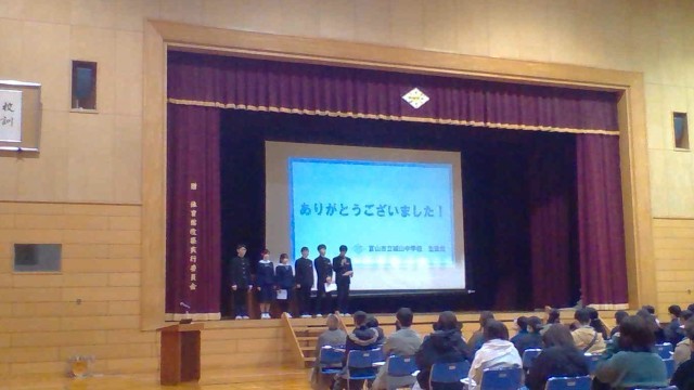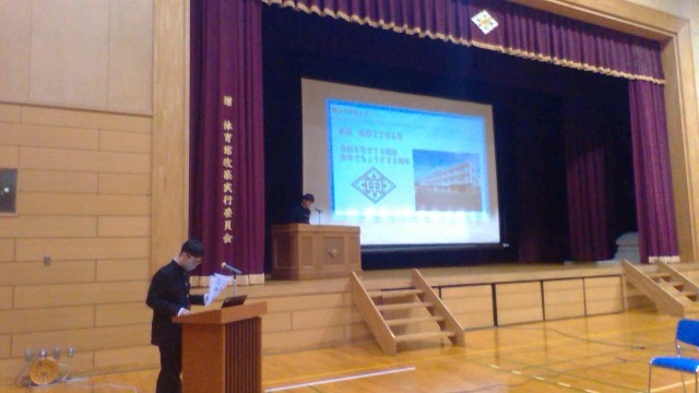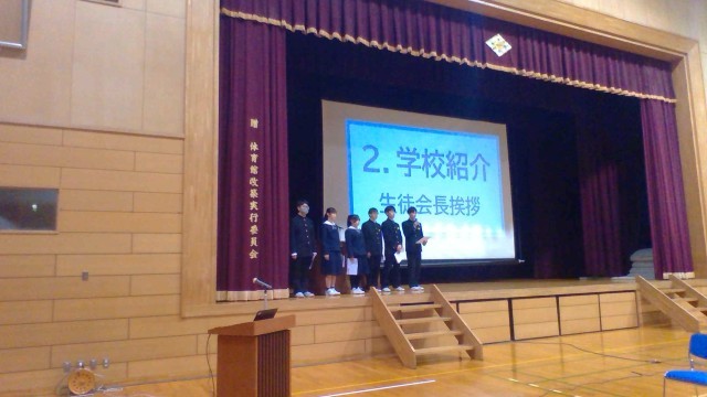 会では、生徒会執行部が中学校生活全般、学校行事、部活動等について説明しました。