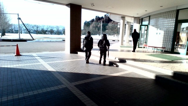 とめてある多くの自動車が、そのフロントガラスを白くしているのを見ながらの通勤となりました。体育館上空は紺碧の空ですが、冷たい空気の漂う朝です。