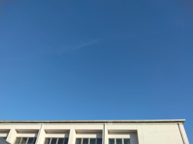 南方に見える空にはうっすらと雲がかかっていますが、体育館真上は今日も真っ青な空です。これだけ紺碧の空が続くと、久しぶりに朝ドラ「エール」が見たくなってきます。