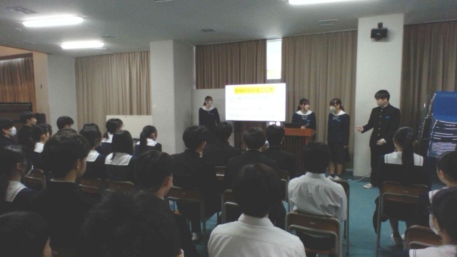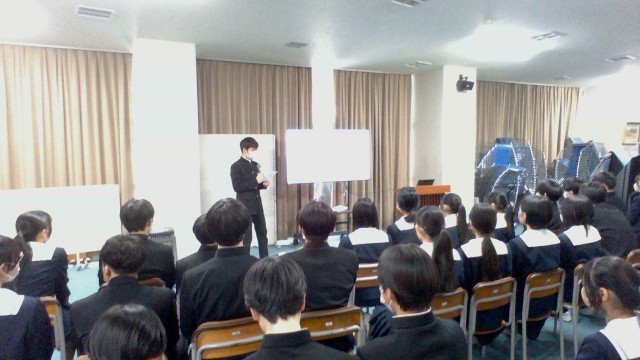 明日からの県立高校一般入学者選抜に向けて、学年生徒会が中心となり、受検の心得や注意事項についての学年集会を行いました。