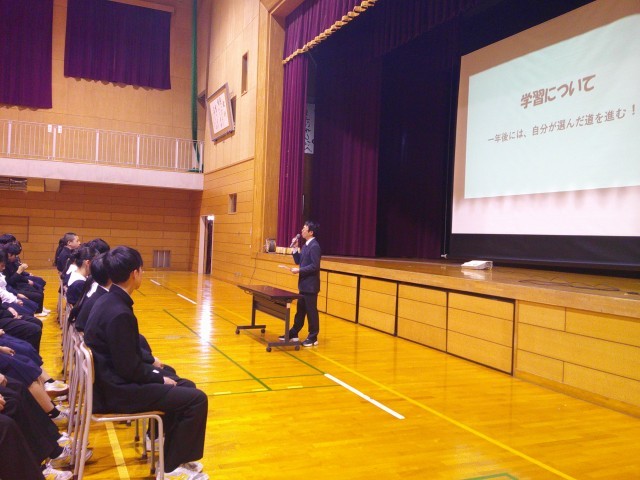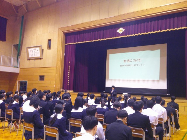 3年生スタートの学年集会を行いました。生活や学習。そして修学旅行についてのお話でした。