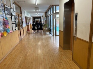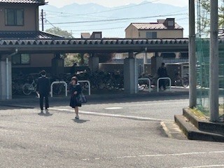 青空が広がる中、生徒たちが登校してきました。