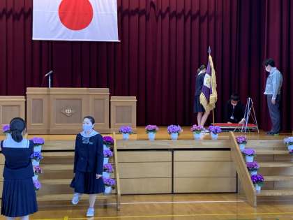 3年生が心を込めて、明日の準備(入学式)をしています。