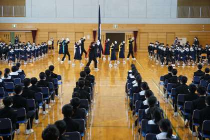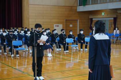 生徒会入会式が行われました。歓迎・入会の言葉があり、その後生徒会応援団による歓迎の応援が行われました。