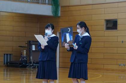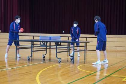 部活動紹介がありました。順に男女バレーボール部、家庭部、卓球部の様子です。
