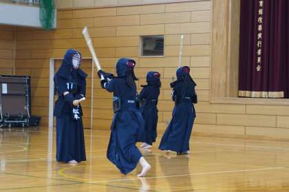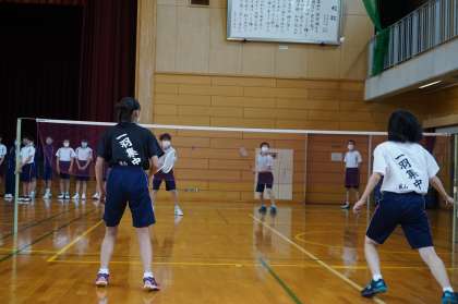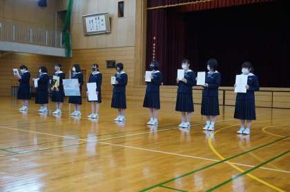 部活動紹介がありました。順に剣道部、男女バドミントン部、美術部の様子です。
