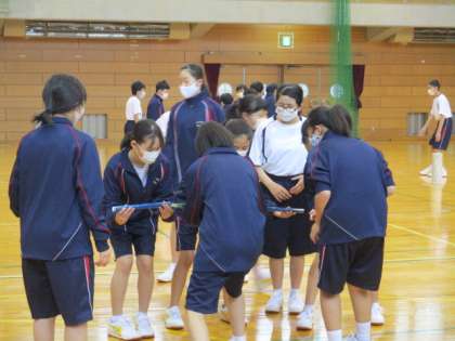 1年2組のプロジェクトアドベンチャーの様子です。グループのメンバーと「協力」しなければ達成できない課題に取り組みながら、協力とは何か、具体的にどうすることなのかを考えることができました。
