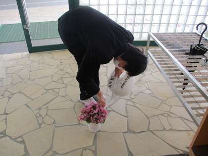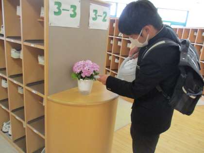 一週間の始まりです。昨日までの雨で、学校の玄関先のプランターの草花も、キラキラ輝いて見えます。ボランティア委員が、校内の鉢植えの水やりをしてくれました。ありがとう!
