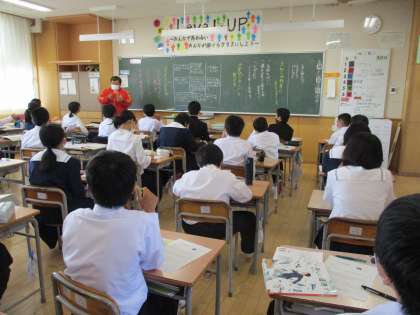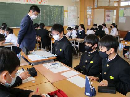 1学年では4限に道徳の授業が行われました。今回は全クラス、「朝市の『おはようございます』」という教材で、あいさつを交わすことの大切さについて学習しました。