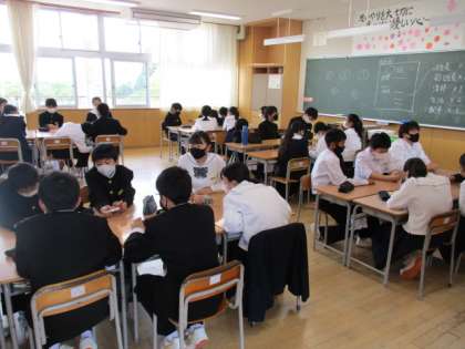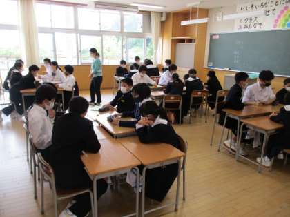 1年生は、それぞれのクラスで班づくりをしています。班の中での役割分担について、熱心に話し合っています。