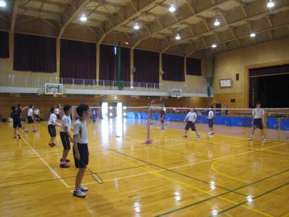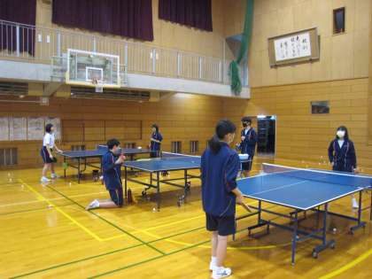 体育館では、卓球部、男子バドミントン部がのびのび活動しています。