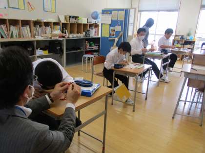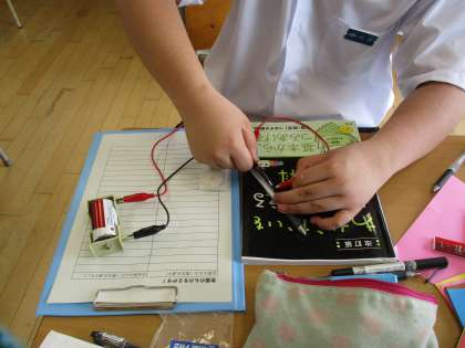 上・中:さくら級1組 理科で「金属をさがす」実験をしています。
