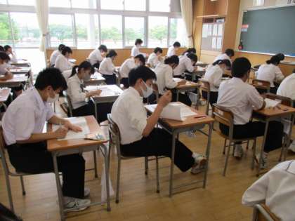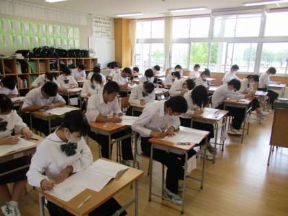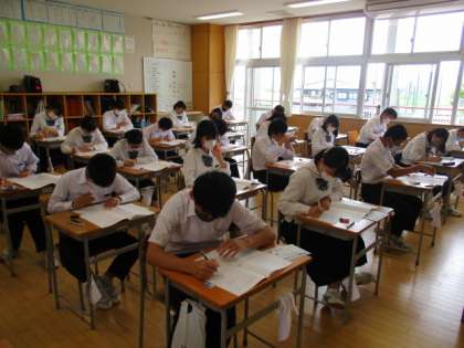 3年生は、全国学力学習状況調査(英語)に取り組んでいます。これまでの学習で身につけた力を生かして、熱心に解いています。