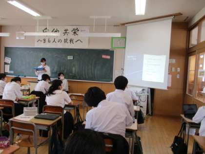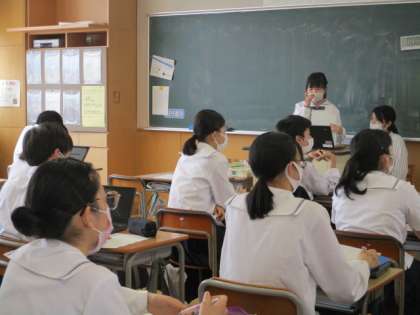 6月3日(木)5,6限は、総合的な学習の時間の発表会でした。2年生になってからの総合的な学習に時間では、探究活動の仕方、情報収集の仕方、まとめ方の方法、プレゼンテーションソフトを使っての発表の方法を学ぶ学習を行ってきました。題材は、私たちの住む富山市についてです。富山市について改めて考え、疑問点を見つけ、そこから深く調べていく事柄を3つに絞りました。その3つについて、おもにインターネットを使って調べ、レポートにまとめ、さらにプレゼンテーションソフトを使って、発表資料にしていきました。本日はその発表会でした。イラストを使ったり、クイズ形式にしたり、アニメーションを使ったりと工夫を凝らしての発表でした。
