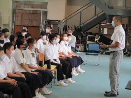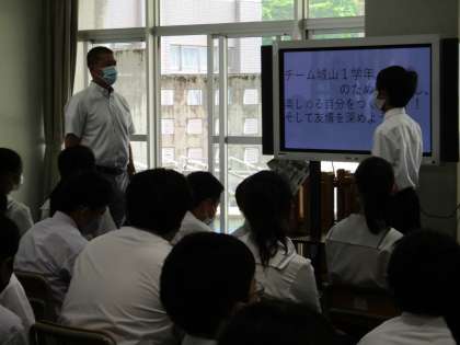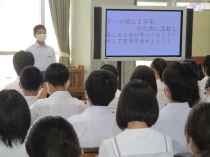 1学年では、14日(月)の砺波青少年自然の家での校外学習に向けて、6限に出発式を行いました。「チーム城山1学年のために活動し、楽しめる自分をつくろう!!そして友情を深めよう!!」のスローガンのもと、さらに1学年の絆が深まることを願っています。