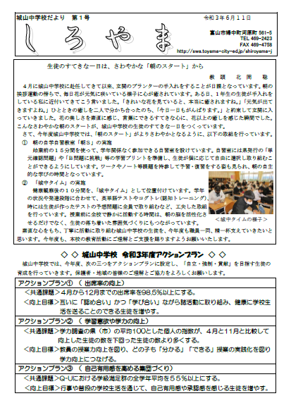 本日学校だより「しろやま」を発行しました。是非ご覧ください。