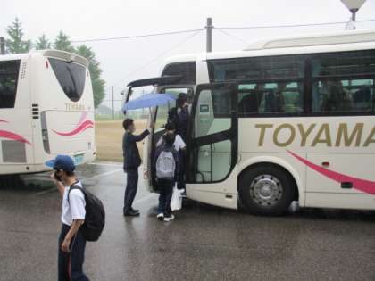1年生は校外学習に出発です。あいにくの雨ですが、子供たちの元気はそれをも吹き飛ばす勢いです!!