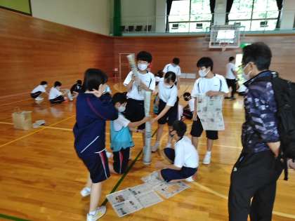 となみんピック(新聞紙タワー)の様子です。高くできましたね!