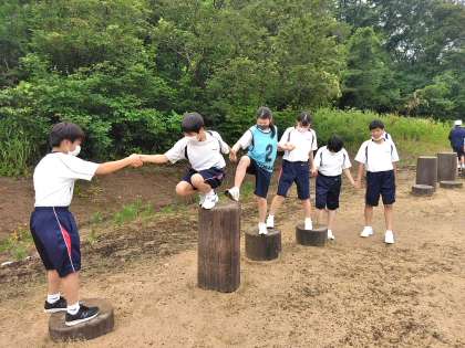 丸太ステップの活動の様子です。みんなで息を合わせています。