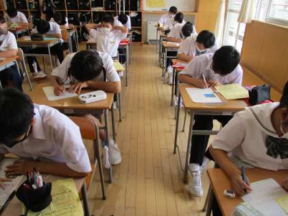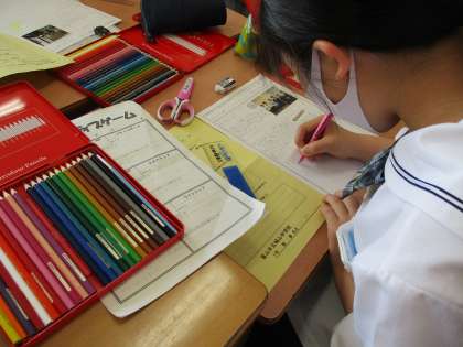 1学年では、昨日の校外学習の新聞を作成しました。しおりを見て、活動を振り返り、レイアウト等を工夫して、かき上げていました。