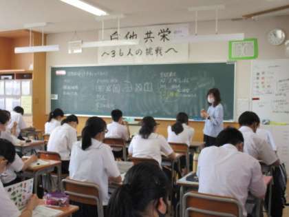 上段は、2年1組の音楽です。いろいろな楽器の特徴について学習しています。